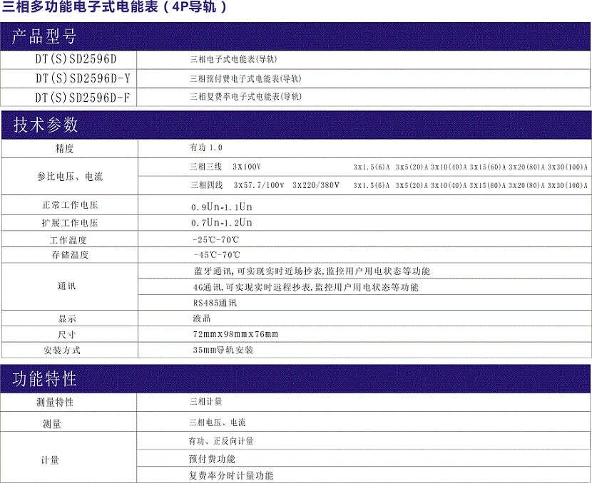 DTSD/DSSD2596D系列三相電子式多功能電能表(導(dǎo)軌)是百瑞順開(kāi)發(fā)的計(jì)量額定頻率為50HZ或60HZ的三相交流有功電能,由8位(6+2)LCD顯示有功總電量,該表設(shè)有紅外和RS485通訊模塊、藍(lán)牙模塊、4G模塊可選,具有可靠性好、體積小、重量輕、外表美觀、35mmDIN標(biāo)準(zhǔn)導(dǎo)軌式安裝等特點(diǎn),并具有良好的抗電磁性干擾、低自耗節(jié)電、高精度、高過(guò)載、高穩(wěn)定性等特點(diǎn)。能有效及時(shí)地滿足用戶對(duì)用電現(xiàn)代管理的需求,可應(yīng)用于電廠、變電站、中高壓系統(tǒng)商業(yè)、工業(yè)及各類(lèi)企事業(yè)單位。