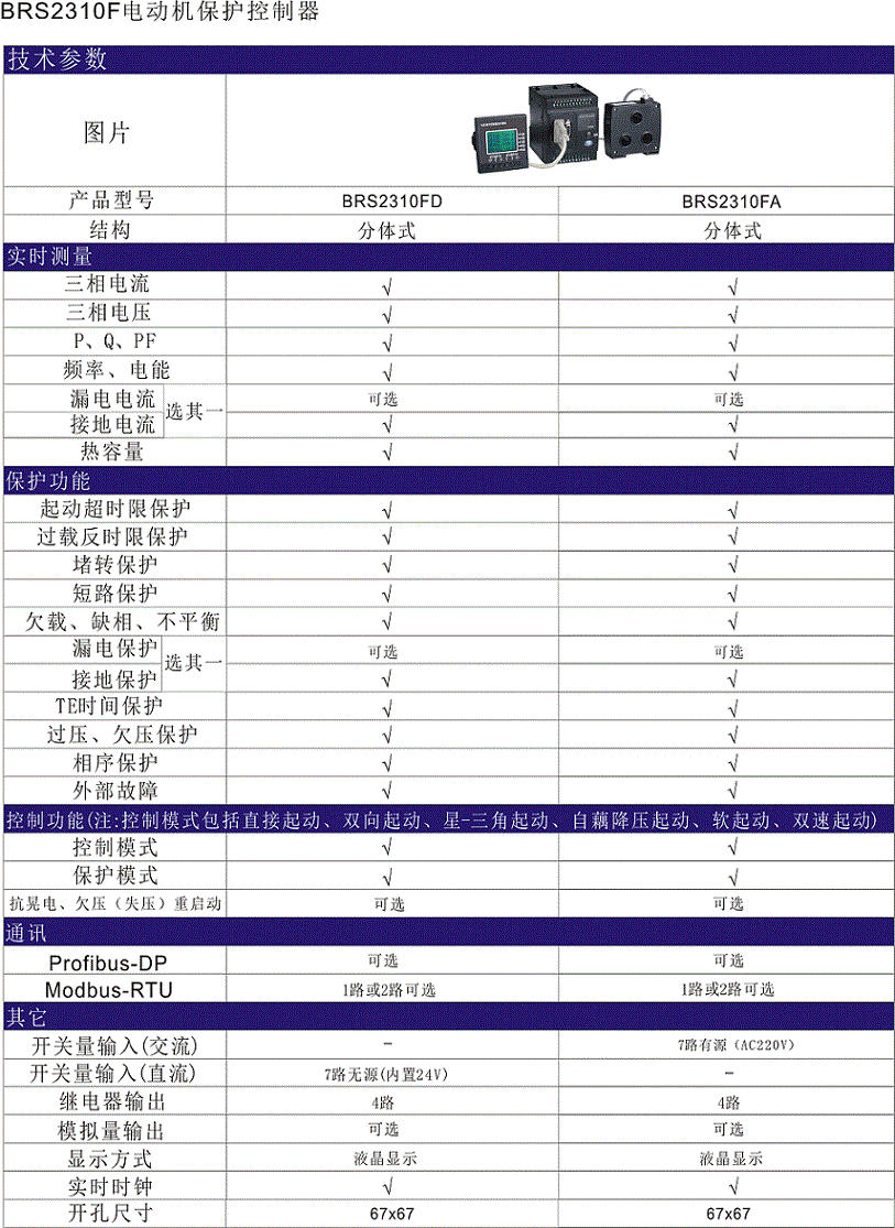 BRS2310F智能電機保護控制器是我公司針對電動機在電力、石化、輕工、煤炭、紙業(yè)、鋼鐵等各種應用場合產生的故障而研發(fā)的電動機保護裝置。適用于保護交流50Hz,額定工作電壓為380V的各種電機。產品與交流接觸器、軟起動器、塑殼斷路器配合為低壓交流電動機回路提供了一整套控制、保護、監(jiān)測,并通過后臺系統(tǒng)實現(xiàn)專業(yè)的解決方案。